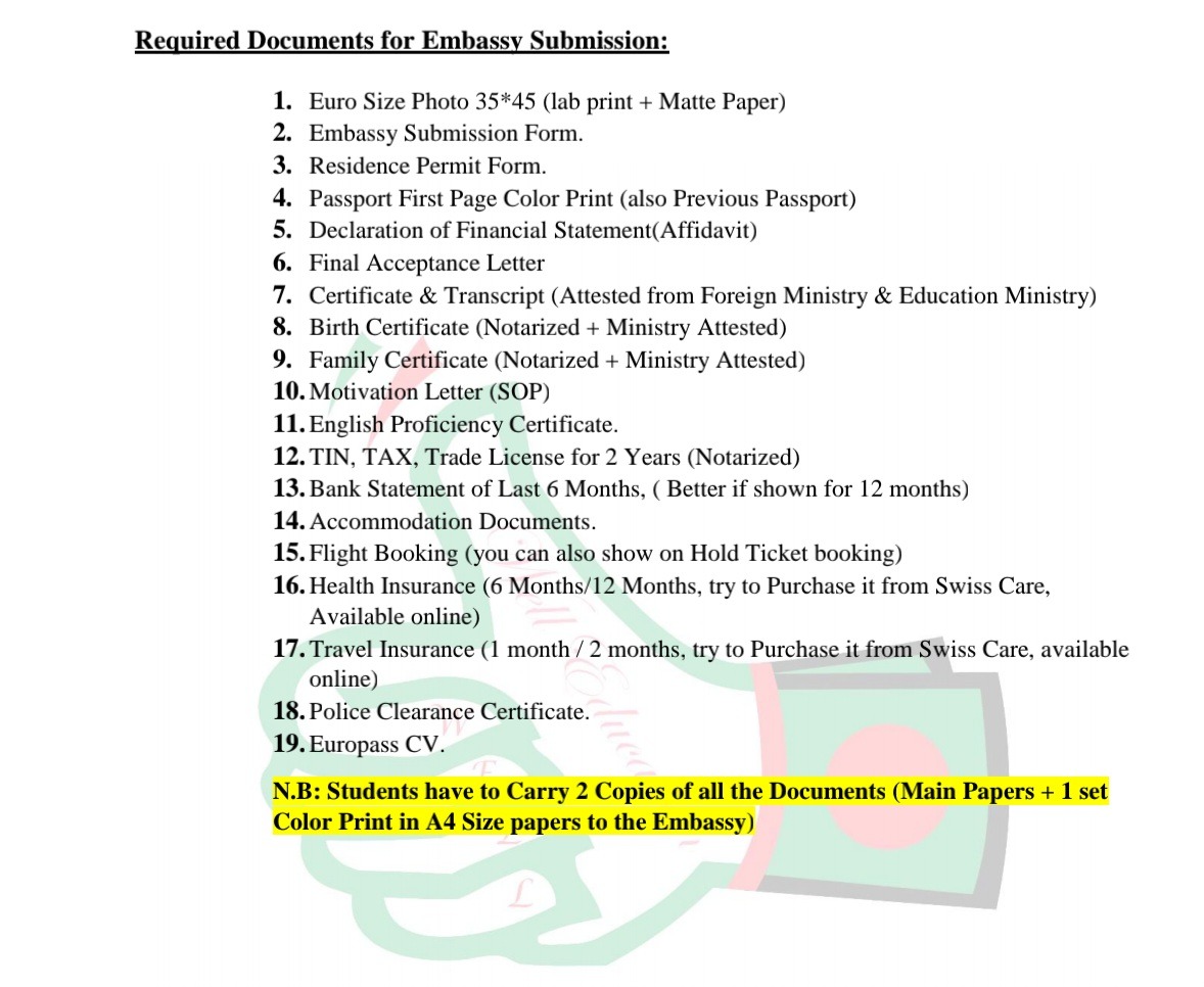 Bank statement / Sponsorship letter (minimum €8,000 or more)